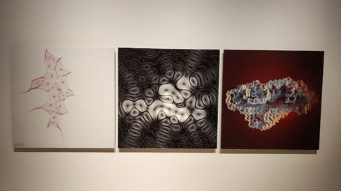 Las piezas más antiguas de la muestra datan de un siglo atrás, de la década de 1920, cuando artistas como Wassily Kandinsky, Paul Klee o Georgia O'Keeffe investigaron formas entre lo humano y lo animal en sus pinturas, estudiando la hibridación con fauna, flora y hasta bacterias y hongos. Por ejemplo, esta exposición investigó cómo a varios artistas contemporáneos les preocupó la analogía entre el cuerpo humano, especialmente el femenino, y la vegetación.